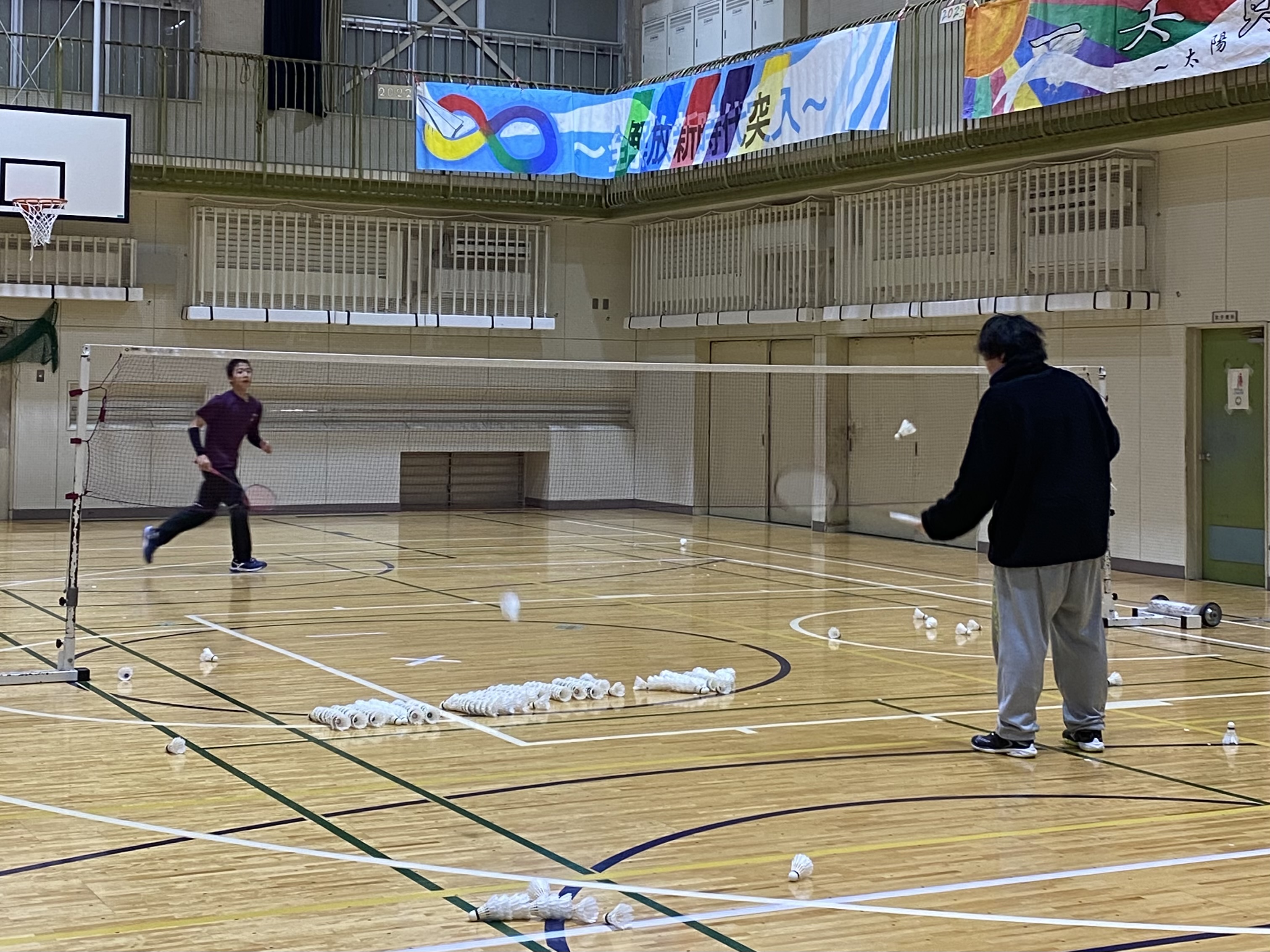 Machi1クラブ篠原様、ラケットショップフジ社長の渡辺様のご指導の元、2時間強化練習、30分試合をし、強化練習ではヘアピン、レシーブ、スマッシュの練習をしました。