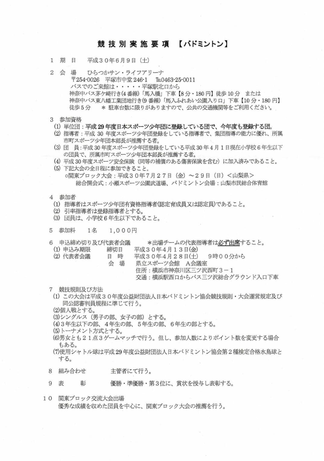 練習は、週に3~4回で主に平塚市内の公民館や小学校の体育館で活動しています。 <チームの目的> バドミントンを通じて子どもたちの心身の健全な育成を図るとともに、 子どもたちのバドミントン技術の向上ならびにバドミントン競技の楽しさを知ることで、将来においてバドミントンを継続して楽しみ、また、バドミントン競技のエキスパートとなる選手を育成することを目的とする。 監督:亀谷幸男