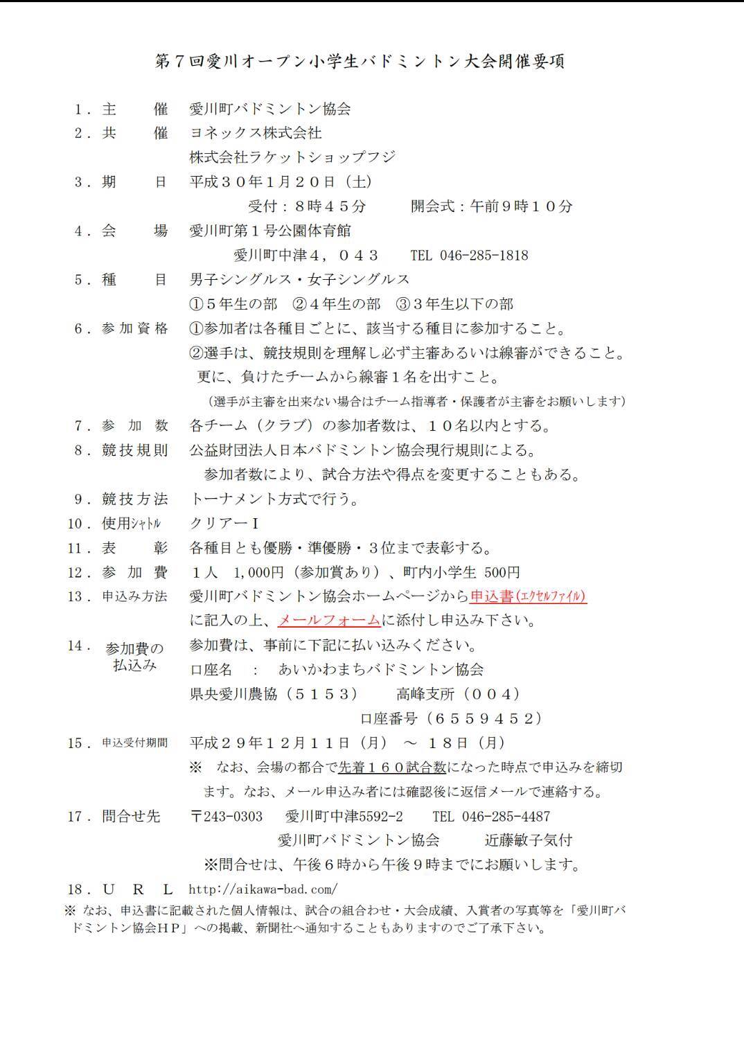 平塚イーグレット平塚市を拠点として活動するジュニアバドミントンクラブ、平塚イーグレットです。(本ページ内の画像等の転載は禁止しています。)PAGE | 24 25 23 22 17 21 20 19 11 18 16 | ADMIN | WRITE 2018.01.22 Mon 09:51:55 第7回愛川オープン小学生大会に参加しました。平成30年1月20日 @愛川町第1号公園体育館