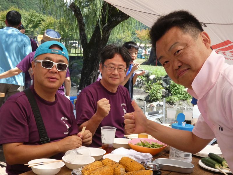 企画も盛りだくさんですよー! (当初はそうめん流しもやる予定でしたが時間が足りずキャンセルとなりました) まずは1人1種類の材料を持ち寄りオリジナルトッピングピザ作り! ピザ窯最高ー! マス掴み取りでは初めて生きた魚に触れた子もいるかな? 捕まえた後は自分で捌いて美味しく頂きましょう。 バドグッズ争奪じゃんけん大会は小西代表と勝負勝負! (古賀さん滝口さんグッズ提供ありがとうございました) スイカ叩き(割れると食べづらいので柔らか~い棒で・・・) 金田副代表ナイススイーング! パパも焼き場で大活躍! あゆか家からビッグなイカの差し入れ頂きました。 参加してくださったコーチ、保護者の皆様、 微妙に遠いところまでお越しいただきありがとうございます。 子どもたちは基本小川で遊んでましたが ちゃんと食べたのかな・・・? 当日は皆様お疲れ様でした。 お盆時期のお忙しい中での大勢の参加、ありがとうございました。 皆様の協力のおかげで何事もなく、無事終えることができました。 子どもたちもたくさん楽しんで、また練習に真摯に取り組んでくれるでしょう。 くれるんじゃないかな?くれたらいいな~… BBQ会は来年、再来年と続いていきます。 来年は今年よりも更に良い企画となりますように アドバイス、気になった点などありましたらbbq係までお知らせ下さい。 係は毎年6年生保護者の持ち回りとなりそうですが しっかりと記録に残し、引き継いでいきたいと思います。 (例えばピザのグループは学年で分けると人数にバラつきがでるとか。ホントすみませn) 今回は参加できなかった方も、来年は是非都合をつけてご参加ください。 本当にありがとうございました! しいたけと生ビール美味しかったです! 青P CommentsComment Form |