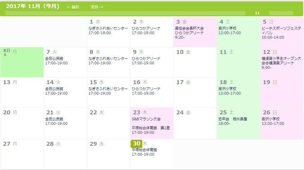 平塚イーグレット平塚市を拠点として活動するジュニアバドミントンクラブ、平塚イーグレットです。(本ページ内の画像等の転載は禁止しています。)PAGE | 14 13 12 10 9 8 7 5 4 3 1 | ADMIN | WRITE 2017.10.19 Thu 14:35:40 平成29年11月の練習予定です。CommentsComment Form |