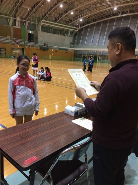 大会結果はこちら 出場は中学生以下の部で 男子単にひろき たくま 女子単にいまり ありさ みずか かなみ 女子複にゆにか&ななみ が出場。 女子単で3名が予選リーグを突破し、ありさは勝ち上がって3位入賞! 初心者組2人が初勝利を上げました。 中学生を相手にみんなよく頑張りました。おめでとう! ・・・・ あ、あと高田コーチが女子複C級で3位入賞されました。そちらもおめでとうございます! CommentsComment Form |